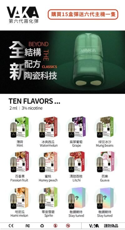 VAKA第六代霧化彈以「更穩定、更細膩、更耐用」為升級核心,導入新一代陶瓷霧化芯並同步優化內部結構,讓導油更順、霧化更均勻,從香氣還原到入口順滑度,都更接近你想要的自然口感。